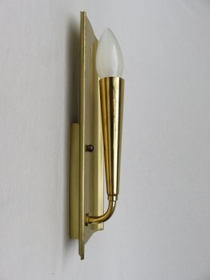Why not use as a bedside table light. This single brushed brass wall light has subtle vintage look. The curved arm holds the cone shaped shade in place. Gibson indoor wall light in antique brass/nickel. Steel or brass body material: